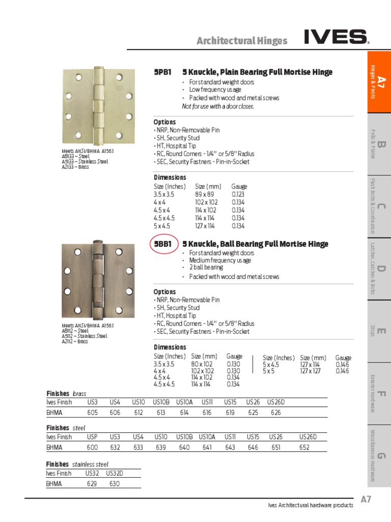 5BB1 Ives HingesActual PDF Screw Building Engineering