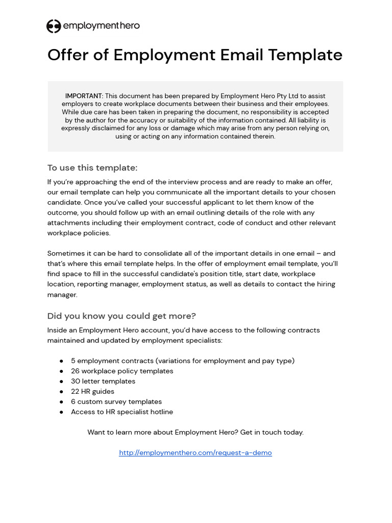 Employment Offer Letter Template Google Docs, Word, Outlook, Apple